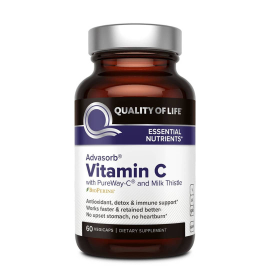 قوی ترین ویتامین C موجود: Advasorb Quality of Life ترکیبی از Pureway-C فرمی از ویتامین C است که به سرعت جذب شده و بهتر حفظ می شود کپسول های ویتامین C ما کوچک هستند و به سرعت جذب می با ویتامین C خود با ADVASORB بیشتر دریافت کنید - جذب سریع تر ماندگاری طولانی تر در بدن و فراهمی زیستی بالاتر بدون ناراحتی معده یا سوزش سر دل بدون اسید اسکوربیک اسیدی بودن به این معنی است که می تواند باعث ناراحتی معده و سوزش سر دل در برخی افراد شود. Advasorb C با ترکیبی از مواد معدنی قلیایی بافر شده است، بنابراین باعث ناراحتی دستگاه گوارش نمی شود. حتی می توانید آن را با معده خالی مصرف کنید. دارای عصاره فلفل سیاه بیوپرین - برای افزایش فراهمی زیستی Pure Way-C Bio Perine مشتق شده از فلفل سیاه، توانایی محصول را برای جذب موثر و کارآمد افزایش می دهد